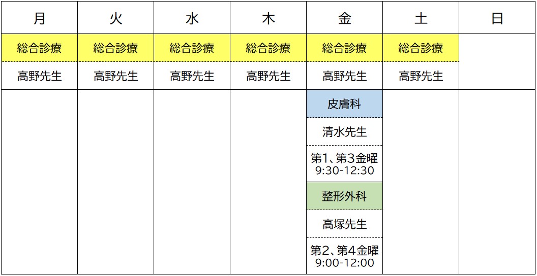 診察日 第一、第三 金曜日9:30~12:30